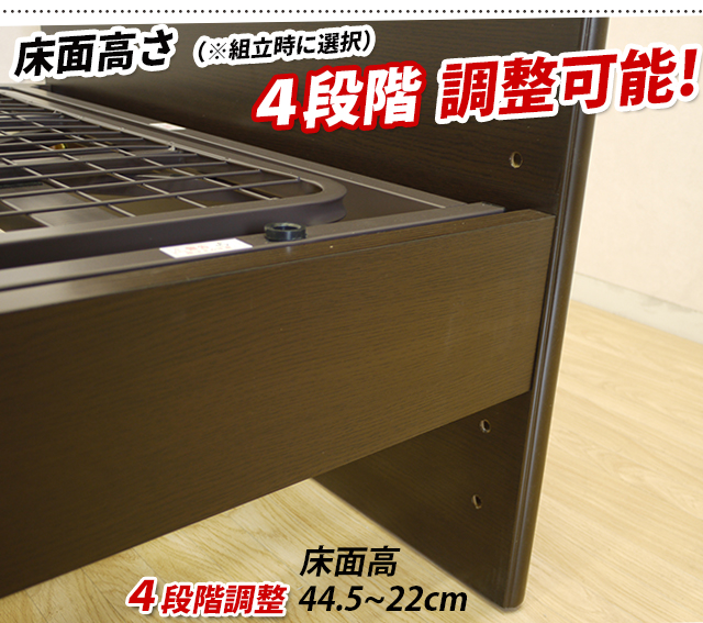 床面高 44.5cm~22cmの間で4段階調整できます。